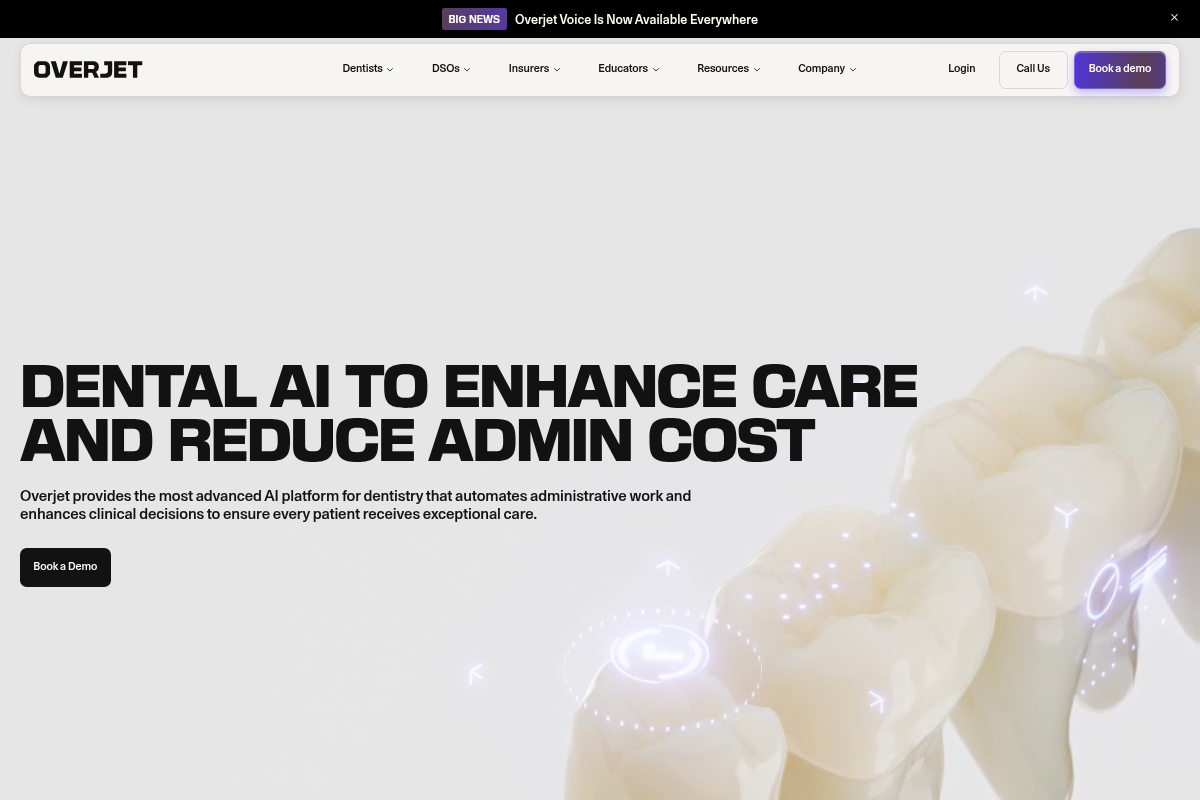 Overjet is the strongest option for practices that want quantitative measurements on radiographs. The bone level percentage and caries probability scores give clinicians and patients specific numbers to discuss, which helps case acceptance. DSOs get consistency across locations. Solo practices should confirm pricing makes sense at their volume.